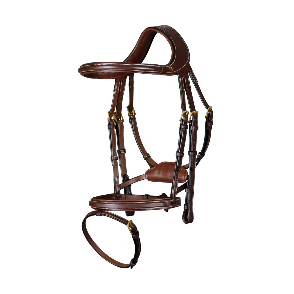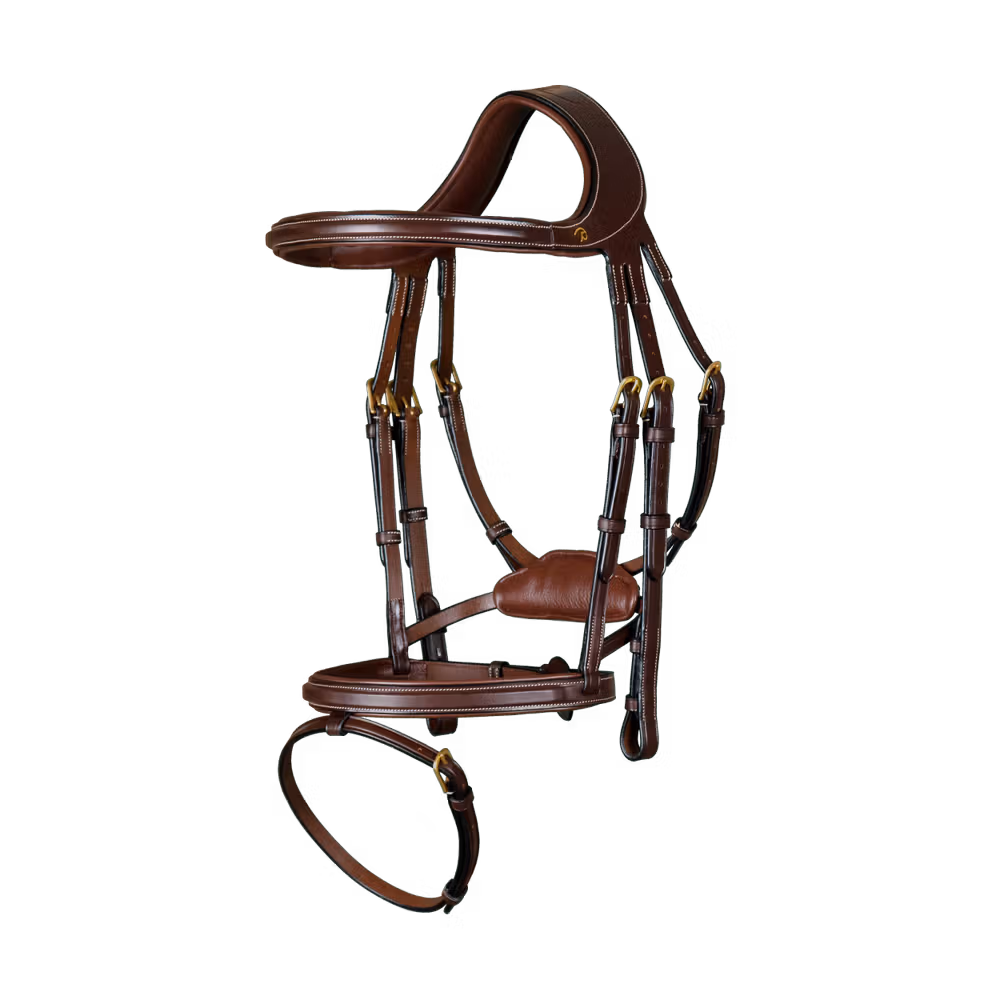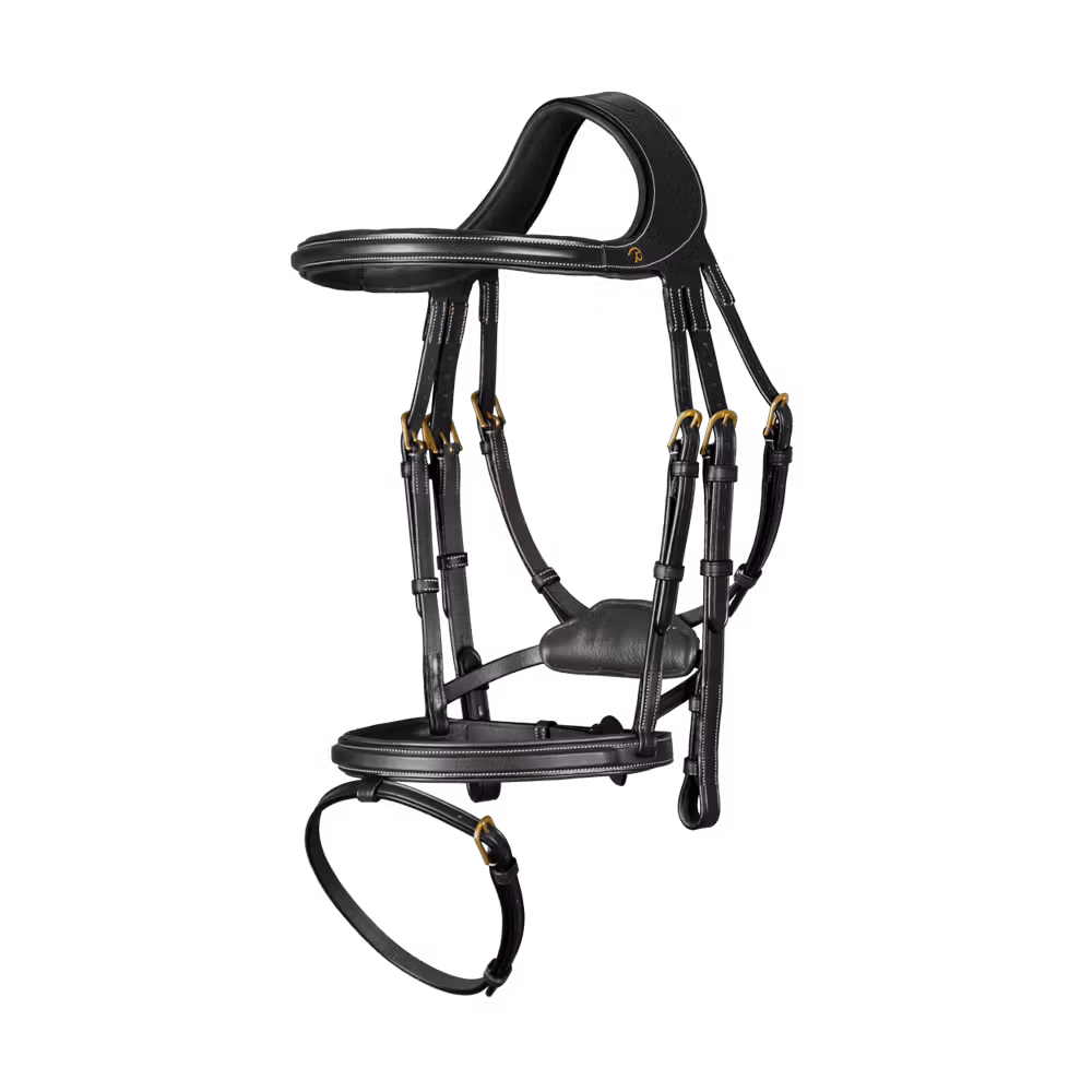 This bridle is engineered with anatomicalprecision, ensuring an optimal pressure-free fit for sensitive horses. Byshifting the headpiece away from the ears, it reduces poll pressure, while the throatlatch-to-nosebandconnection maintains stability without restricting movement. Made from high-qualityDy’on leather, this bridle provides the perfect balance of comfort, durability,and functionality for horses in need of a specialized fit.